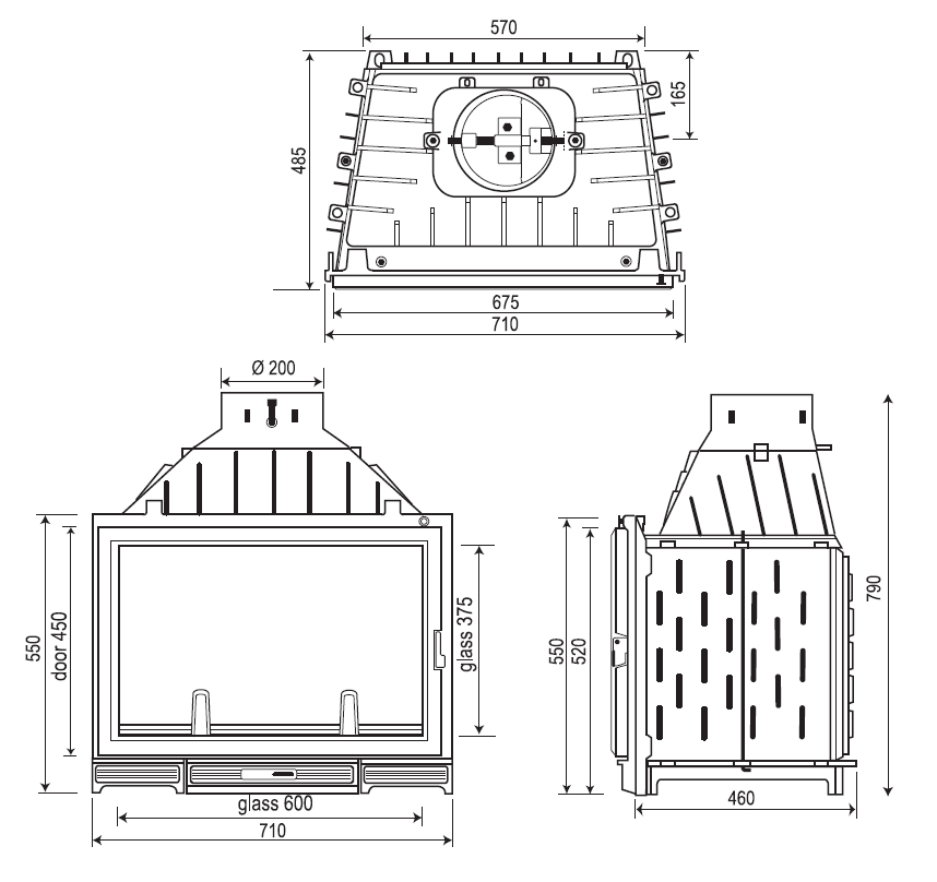 - зольный ящик (доступ к нему) на фасадной части топки.