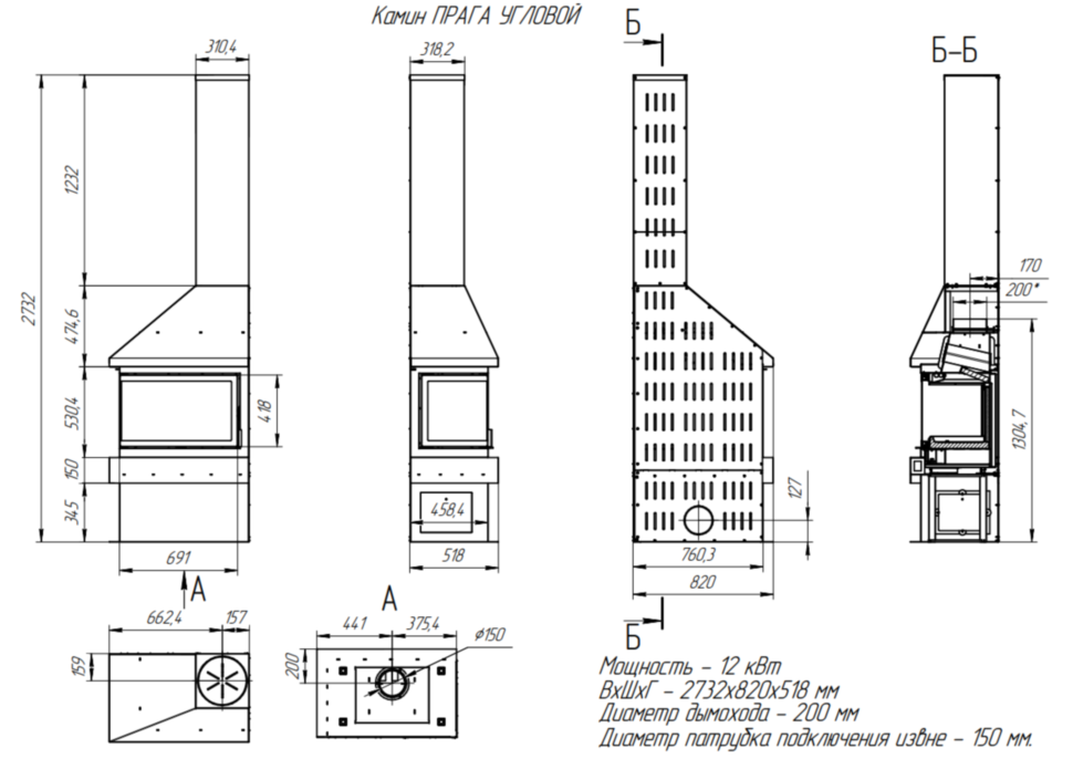 | Главная / Камины для дома / Печи-камины / Печи камины Бавария / Камин ПРАГА УГЛОВОЙ правый (левый) черный, шамот белый |